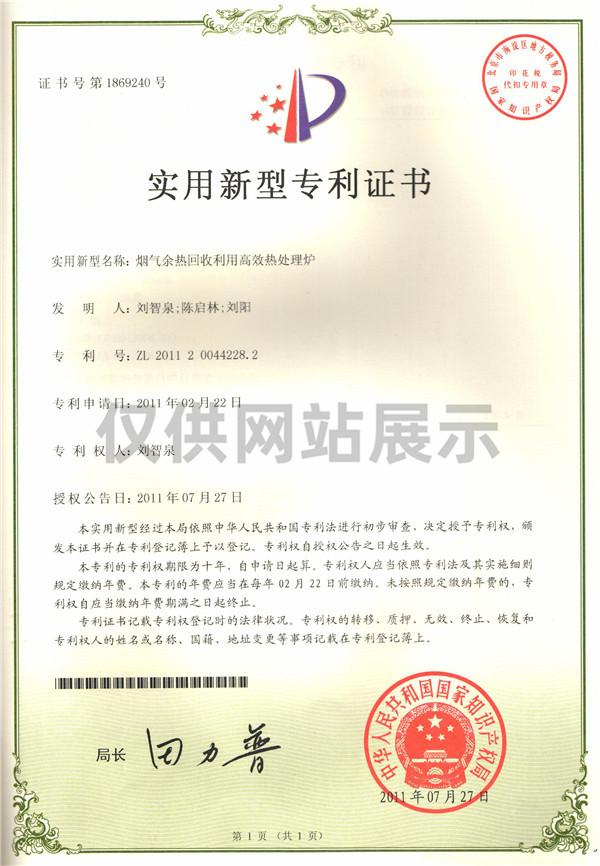 煙氣余熱回收利用熱處理爐